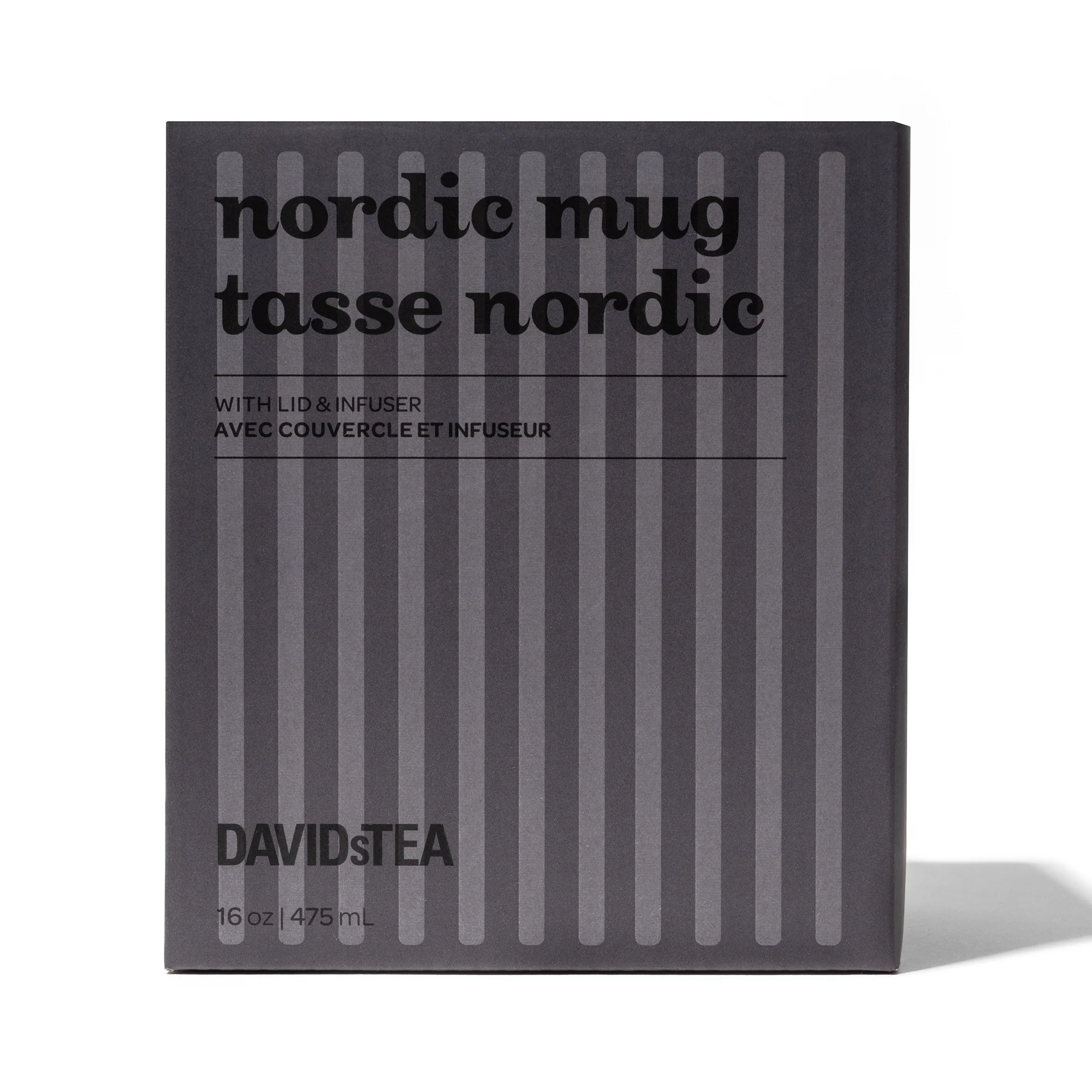 Made of durable ceramic, our iconic DAVIDsTEA Nordic Mug is clean, modern & sturdy, and holds a lot of tea. And for this Sesame Grey Ribbed Nordic Mug, we also threw in a sleek ribbed texture to spice things up a li'l. With a high quality stainless steel infuser and a lid that doubles as a saucer, you'll want to snuggle with it from day to night.